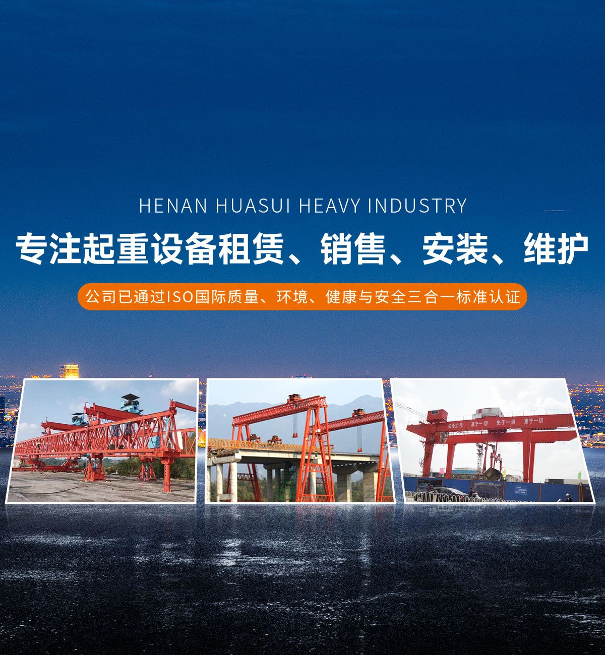 河南華隧重工機械裝備有限公司主要從事通用門式起重機、橋式起重機、電動單梁起重機,輪胎式起重機、架橋機、提梁機、遠梁平車、鋼絲繩電動萌蘆、卷揚機、起重配件制造、銷售:起重機械租賃、安裝和維修,起重設備園收,機械設備維修,鋼結構工程承包,橋梁工程及技術咨淘服務,銷售五金制品、機電設備:建設工程監理,建設工程設計,各類工程建設活動,建筑勞務分包,建筑物折除作業,施工作業,工程管理服務,土石方工程施工,裝如發運?! 」疽淹ㄟ^IS0國際質量、環境、健康與安全三合一標準認證,特種設備制造許可證和特種設備安裝改造維修許可證。擁有完熟的質量管理體系。嚴格的管理制度,強大的生產能力和先進的檢測手段,在保證產品質量的同時,也具備了極強的市場競爭力?! 」緢猿挚萍紕撔聻槔砟?,產品質量為核心,注重信譽,建立了減信可靠、快捷、思速。便利周到的售后服務網絡?! ∥覀儞碛械募夹g專家和技術服務隊伍為客戶提供充善的售前技術支持和全天候的售后服務體系,讓您無后顧之憂,享受一站式的超值服務?!  叭A隧重工,伴您成功“是華隧重工永遠的宗指,真被的希望與各界朋友攜手并進。共創輝準!